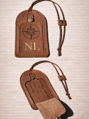 Etiquette à bagage à clapet en cuir