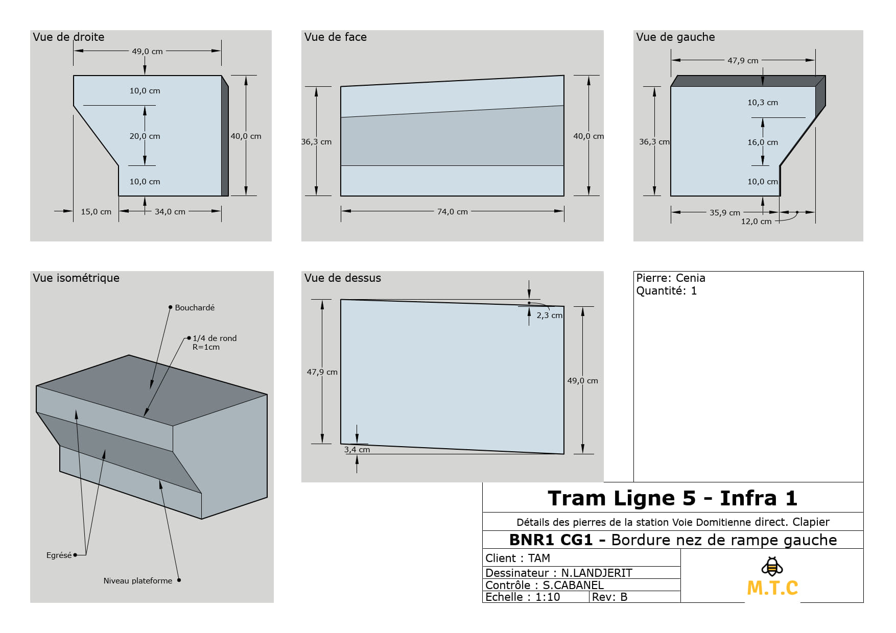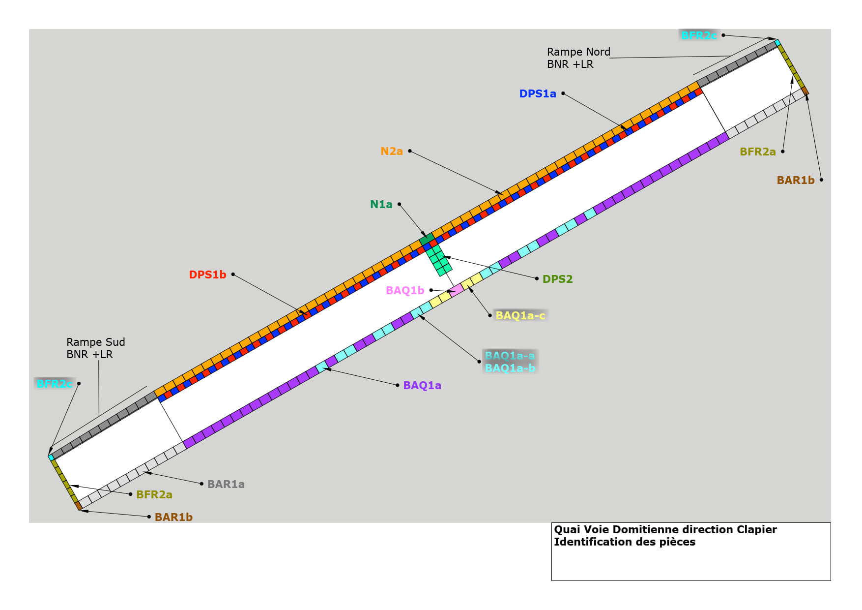 Vue en plan d'une station de la ligne 5 du tram de Montpellier pour identifier des différentes pièces à poser